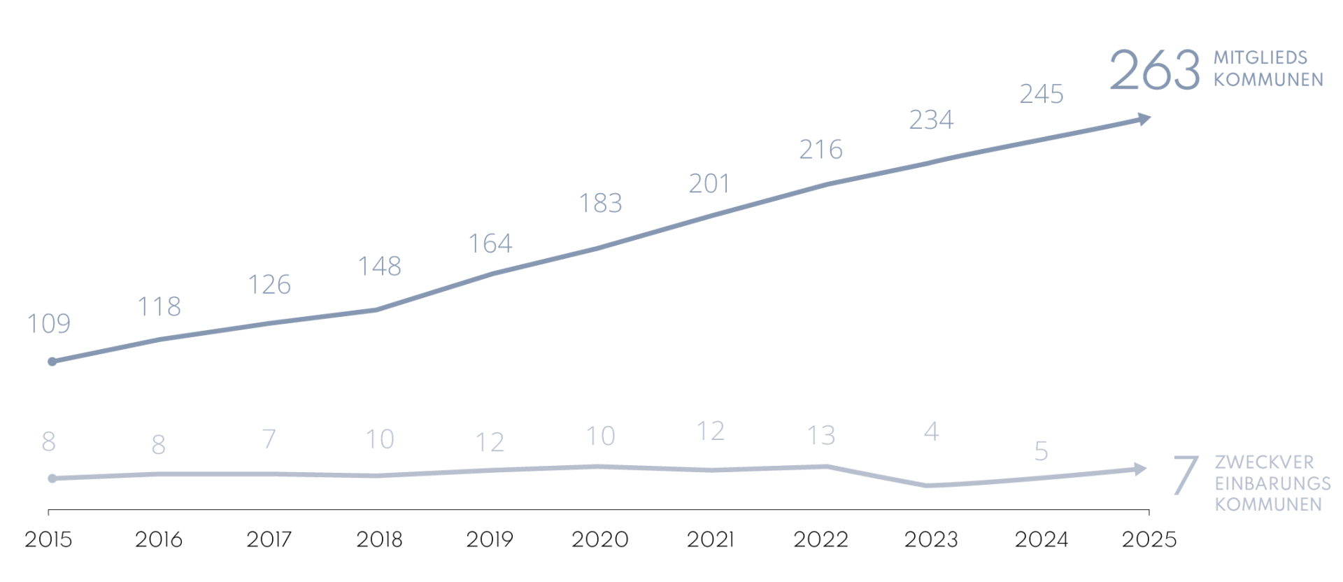 | Anzahl der Mitgliedskommunen | 201 | 216 | 234 | 245 | 263 |