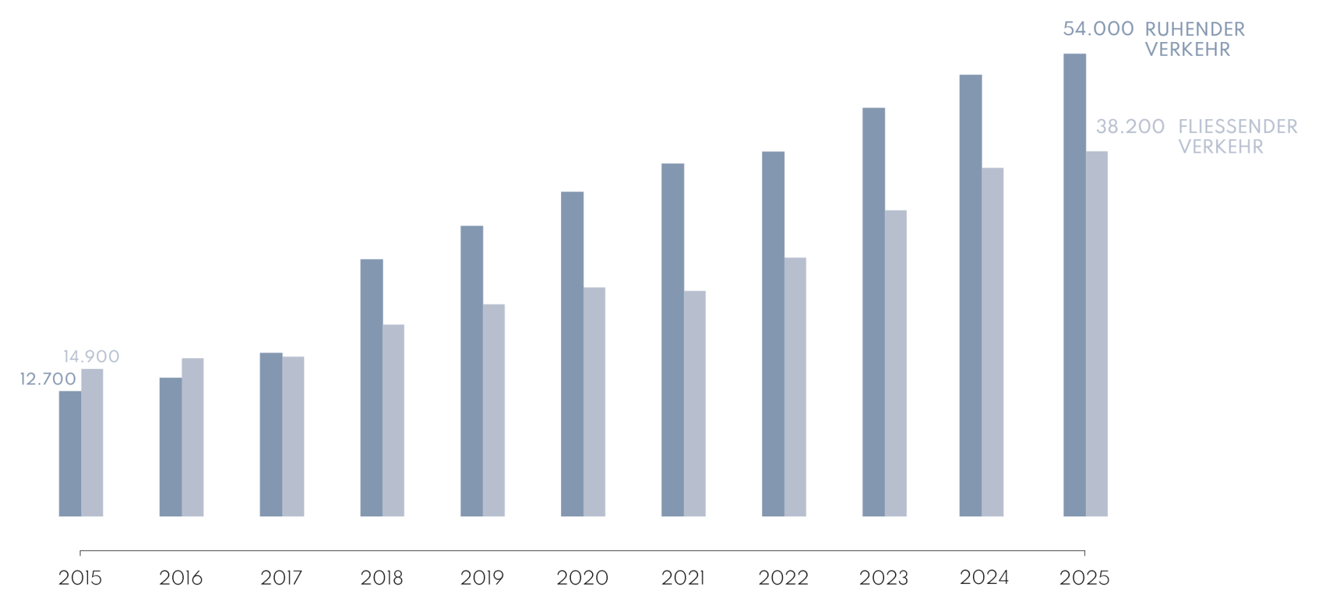 | Anzahl der geahndeten Verstöße im ruhenden Verkehr | 137.000 | 134.000 | 156.000 | 170.000 | 190.000 |