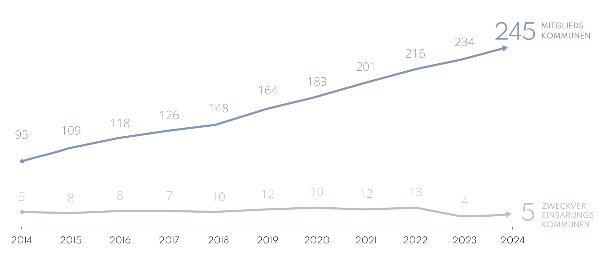 | Anzahl der Mitgliedskommunen | 183 | 201 | 216 | 234 | 245 |