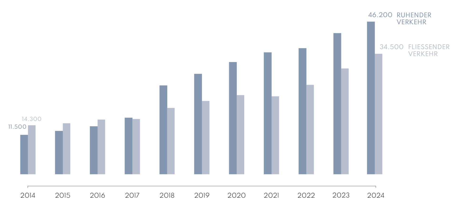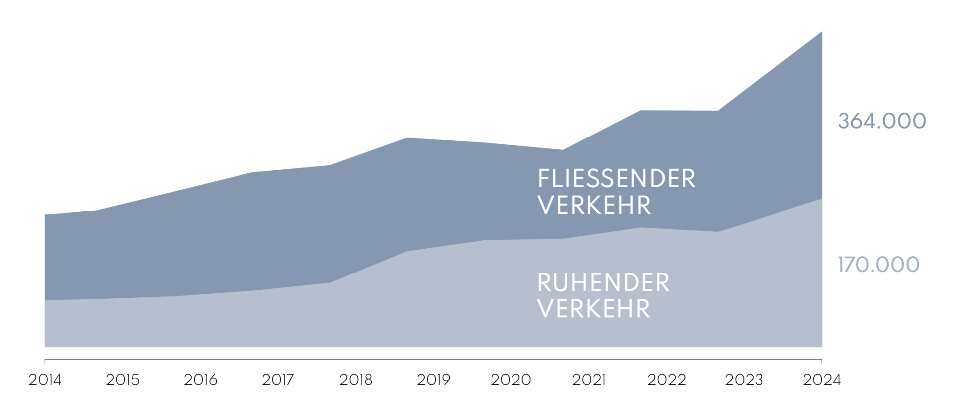 | Anzahl der geahndeten Verstöße im ruhenden Verkehr | 127.000 | 137.000 | 134.000 | 156.000 | 170.000 |